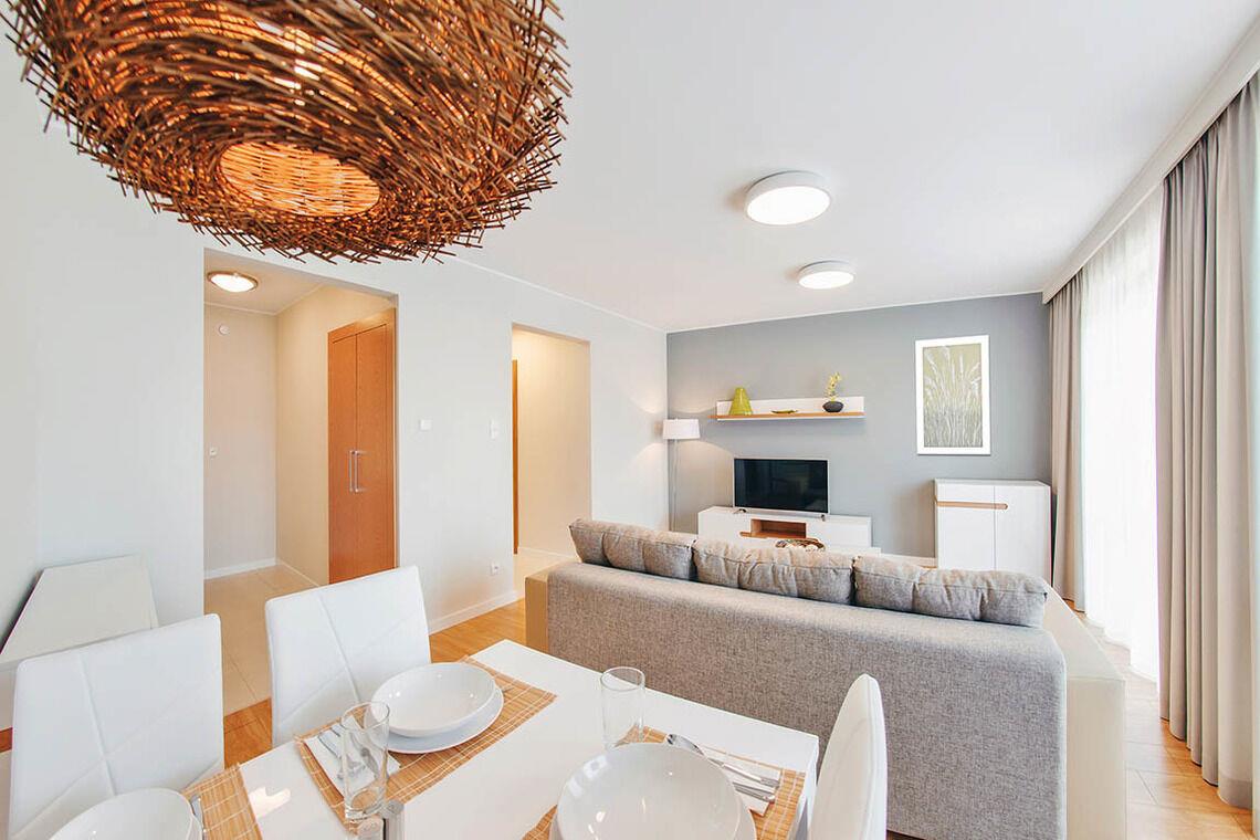 Zu den gewählten Apartments darf man mit dem Hund ankommen. Die zusätzlichen Kosten des Aufenthalts mit einem vierbeinigen Freund betragen 100 PLN (Einzelgebühr). Die Gäste, die den Aufenthalt mit dem Hund planen, bitten wir um eine frühere Kontaktaufnahme mit unserem Service im lokalen Büro.