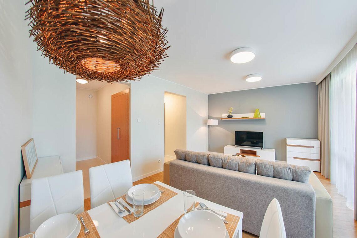 Zu den gewählten Apartments darf man mit dem Hund ankommen. Die zusätzlichen Kosten des Aufenthalts mit einem vierbeinigen Freund betragen 100 PLN (Einzelgebühr). Die Gäste, die den Aufenthalt mit dem Hund planen, bitten wir um eine frühere Kontaktaufnahme mit unserem Service im lokalen Büro.