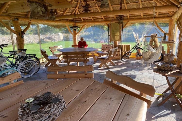 Parterre: (offene Küche(Kochplatte(2 Kochplatten, Induktion), Wasserkocher, Toaster, Dunstabzugshaube, Kaffeemaschine, Mikrowelle, Spülmaschine, Kühl-/Gefrierkombination, Stabmixer), Wohn/Esszimmer(Doppelschlafcouch, TV(Flatscreen), Esstisch, Sitzecke), Badezimmer(Dusche, Waschbecken, Toilette, Föhn)) In der 1. Etage: (Schlafzimmer(Doppelbett, Balkon)) Rezeption, Internet, Parkplatz, Massage, Fahrradverleih, Liegewiese, Sauna (kostenpflichtig), Waschmaschine(Gemeinschaftliche Nutzung mit anderen Gästen, gegen Gebühr), Heizung(durch Klimaanlagen), Klimaanlage, Terrasse(alleinige Nutzung), Garten(Gemeinschaftliche Nutzung mit anderen Gästen, umzäunt, 2000 m2), Gartenmöbel, Liegen, Grill(Holzkohle), Fahrräder verfügbar, Hängematte, Hochstuhl, Bügelbrett, Bügeleisen, Gartenhaus, Babybett (kostenlos)