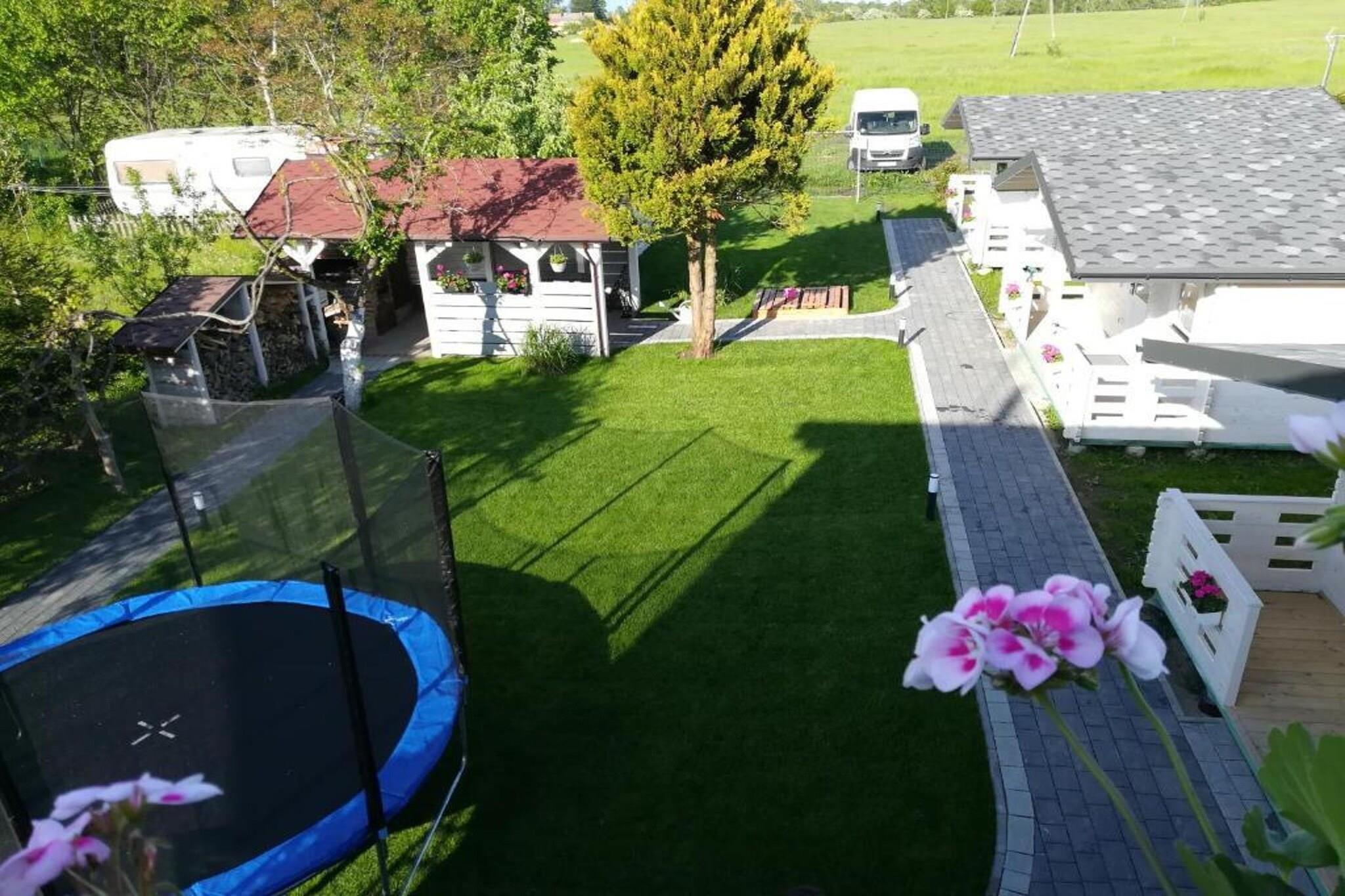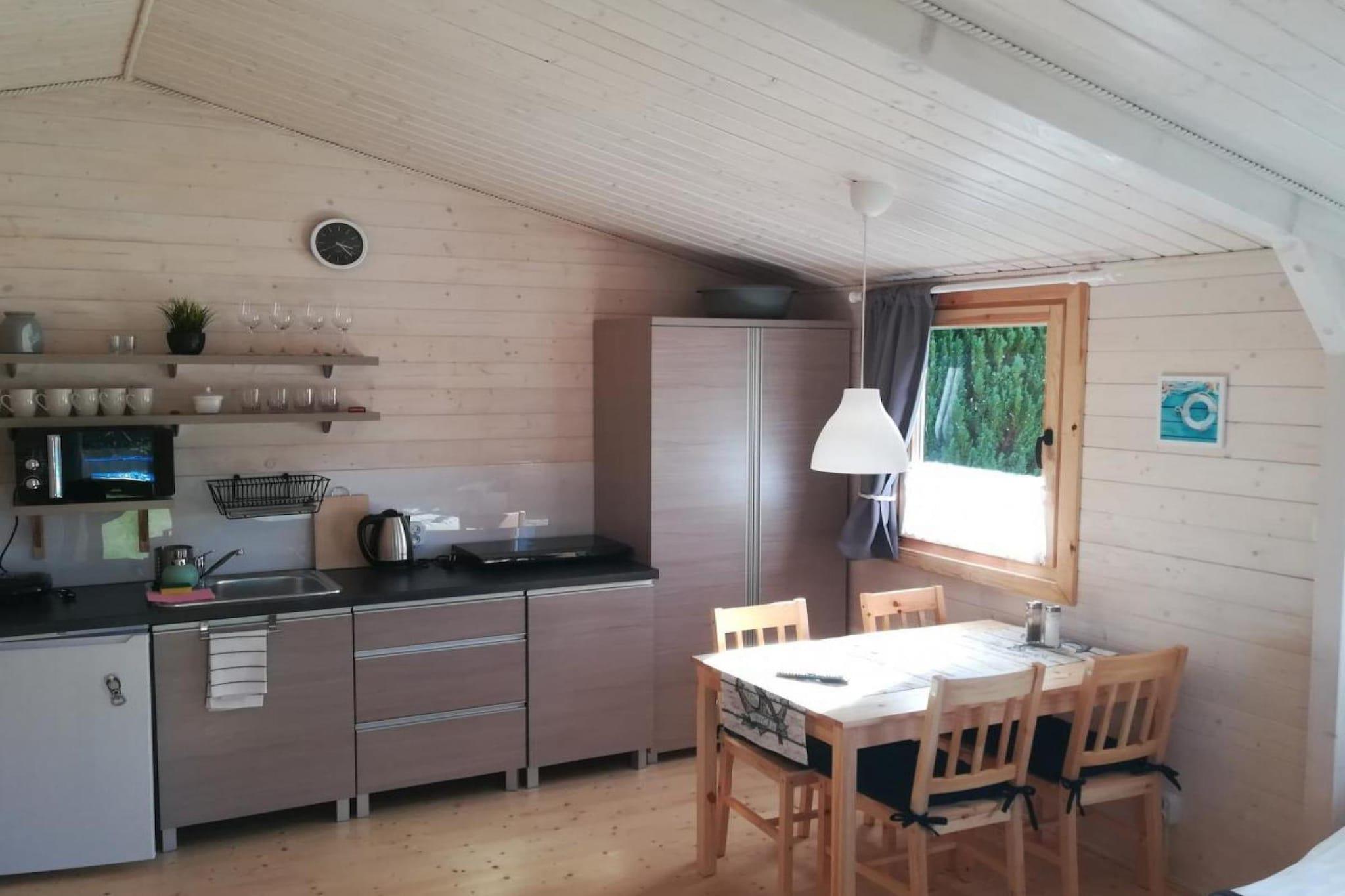 Parterre: (offene Küche(Kochplatte(2 Kochplatten, Induktion), Wasserkocher, Toaster, Mikrowelle, Kühl-/Gefrierkombination), Wohn/Esszimmer(Doppelschlafcouch, TV(Flatscreen), Esstisch), Schlafzimmer(Einzelbett, Einzelbett), Badezimmer(Dusche, Waschbecken, Toilette)) Rezeption, Internet, Spielplatz, Liegewiese, Heizung(elektrisch), Terrasse(überdacht), Garten(Gemeinschaftliche Nutzung mit anderen Gästen, umzäunt, 800 m2), Gartenmöbel, Liegen, Grill(Holzkohle), Parkplatz, Trampolin(Gemeinschaftliche Nutzung mit anderen Gästen), Sandkasten(Gemeinschaftliche Nutzung mit anderen Gästen), Hochstuhl, Gartenhaus, Schaukel
