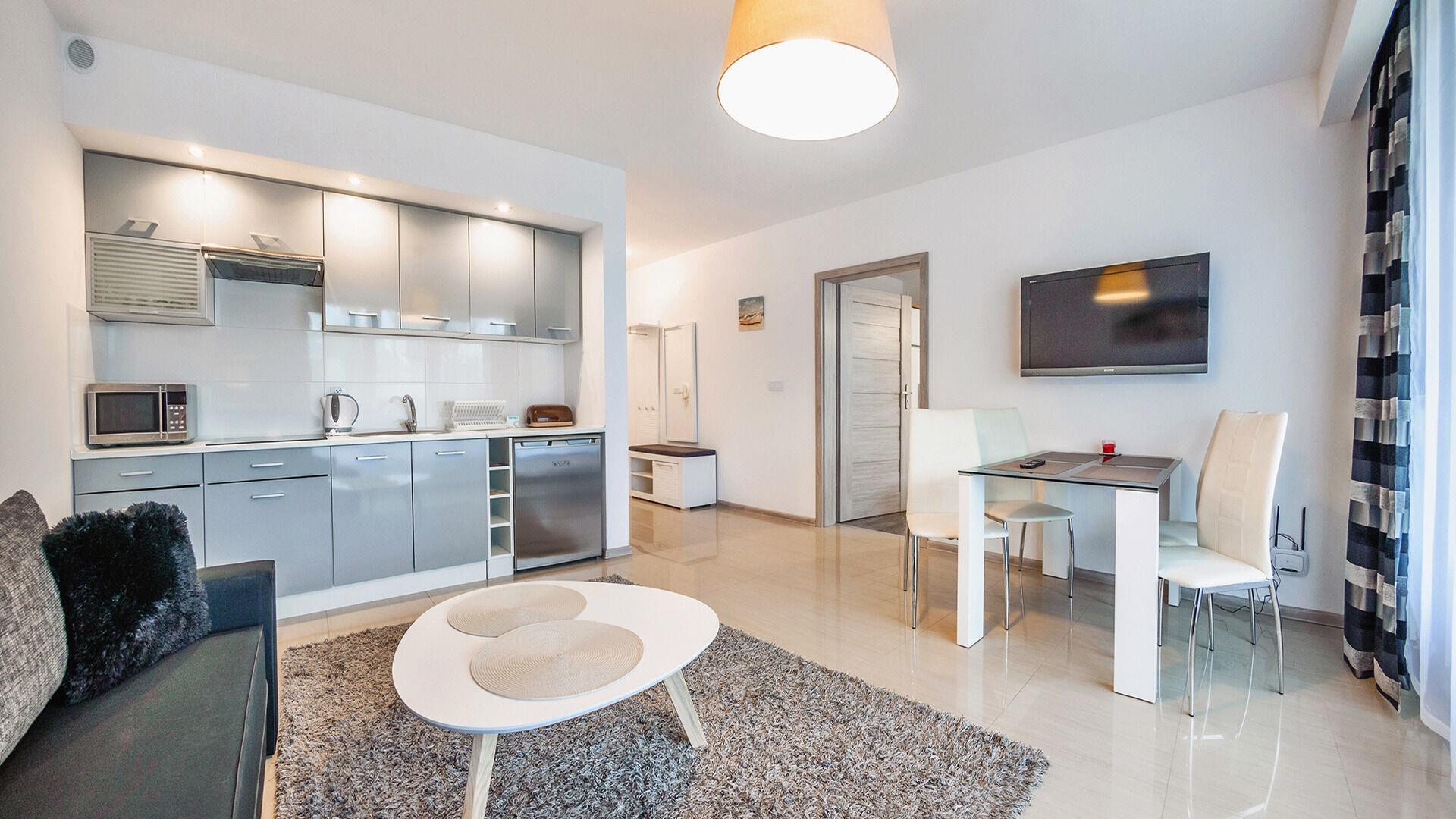Zu den gewählten Apartments darf man mit dem Hund ankommen. Die zusätzlichen Kosten des Aufenthalts mit einem vierbeinigen Freund betragen 100 PLN (Einzelgebühr). Die Gäste, die den Aufenthalt mit dem Hund planen, bitten wir um eine frühere Kontaktaufnahme mit unserem Service im lokalen Büro.