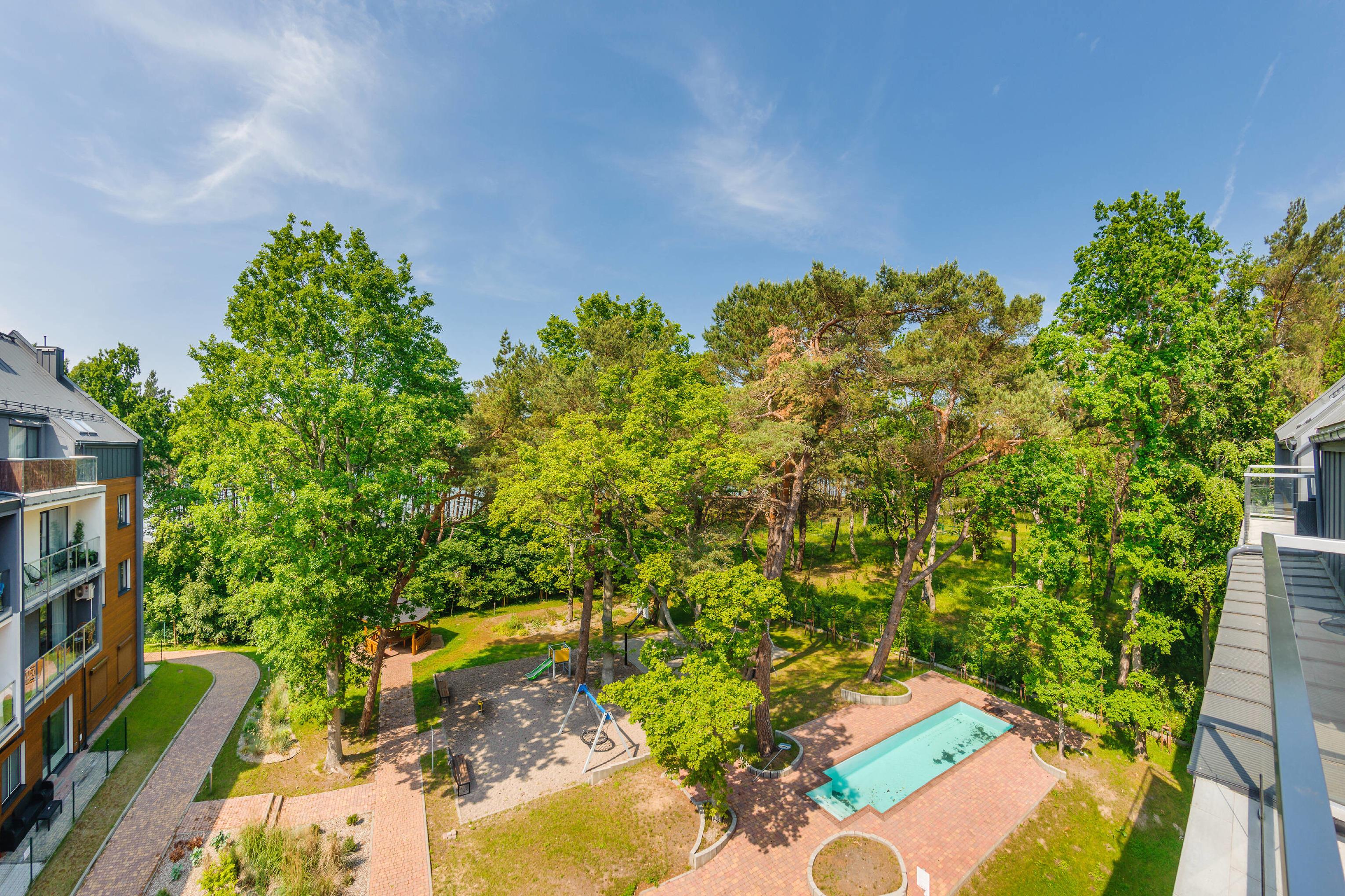 Die Apartments fügen sich harmonisch in die Küstenumgebung ein. Eine große Grünfläche rund um die Anlage, Ruheplätze und ein großzügiger Kinderspielplatz schaffen eine einzigartige Atmosphäre und bilden eine Oase für Kinder. Auch aktive Menschen und Senioren finden hier einen ruhigen Rückzugsort und einen gemütlichen Ort zum Ausruhen.