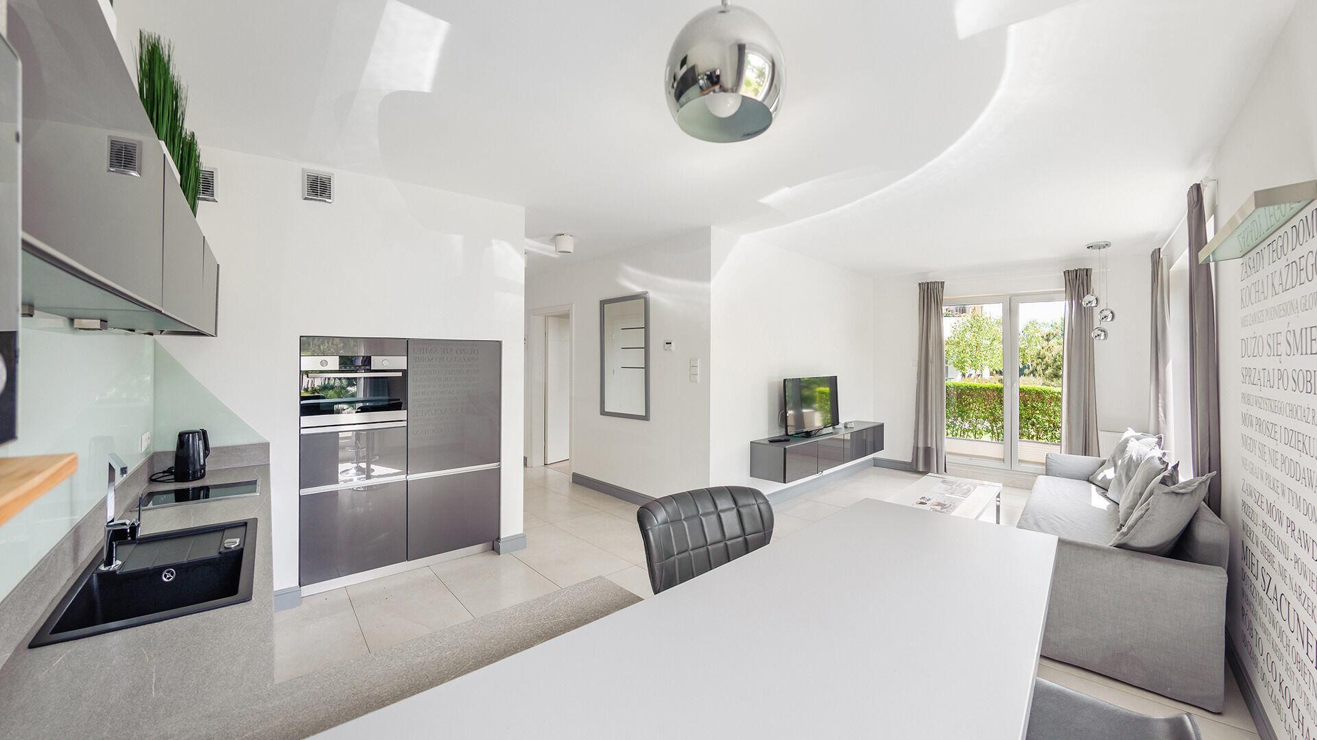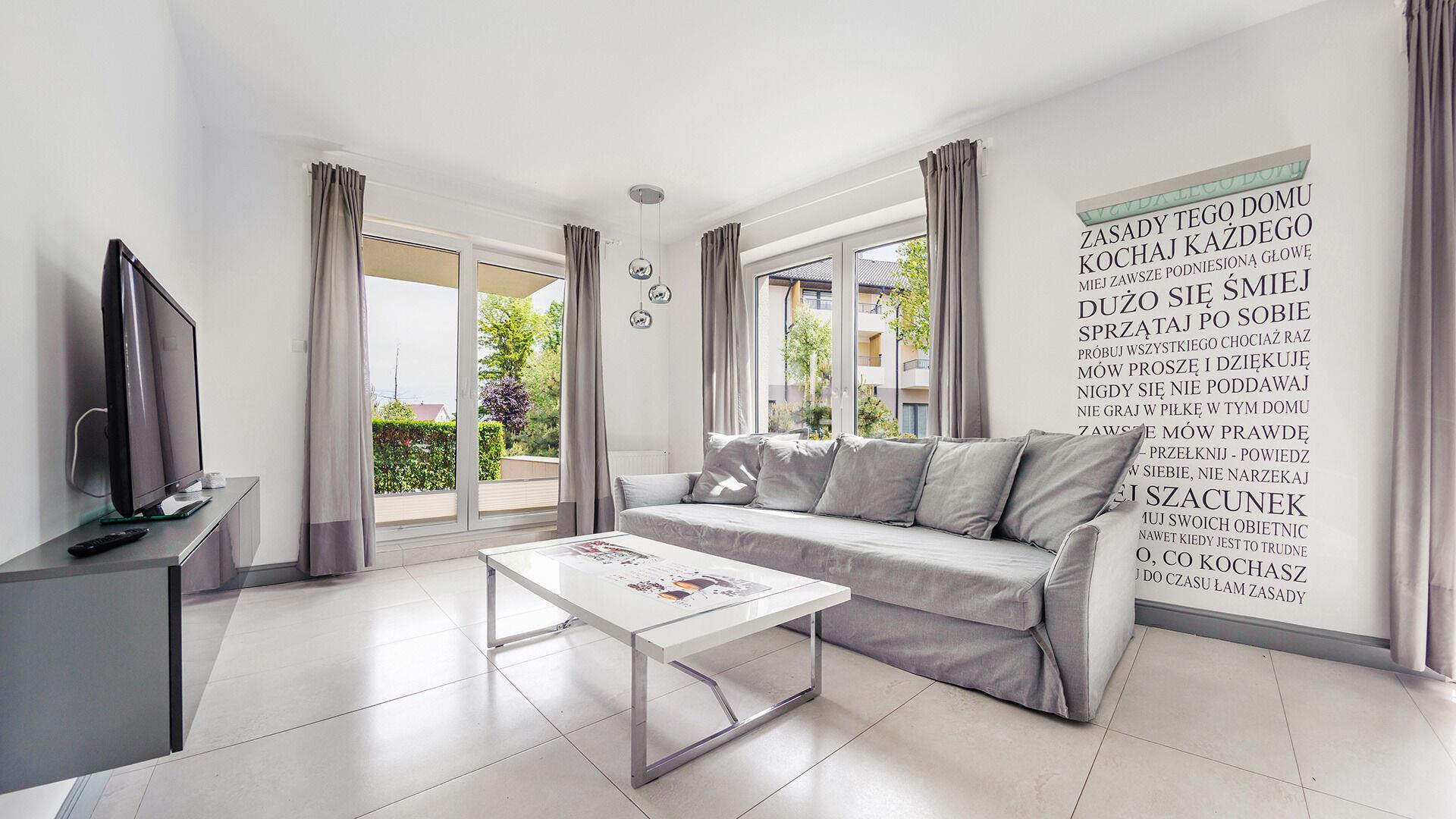 Zu den gewählten Apartments darf man mit dem Hund ankommen. Die zusätzlichen Kosten des Aufenthalts mit einem vierbeinigen Freund betragen 100 PLN (Einzelgebühr). Die Gäste, die den Aufenthalt mit dem Hund planen, bitten wir um eine frühere Kontaktaufnahme mit unserem Service im lokalen Büro.