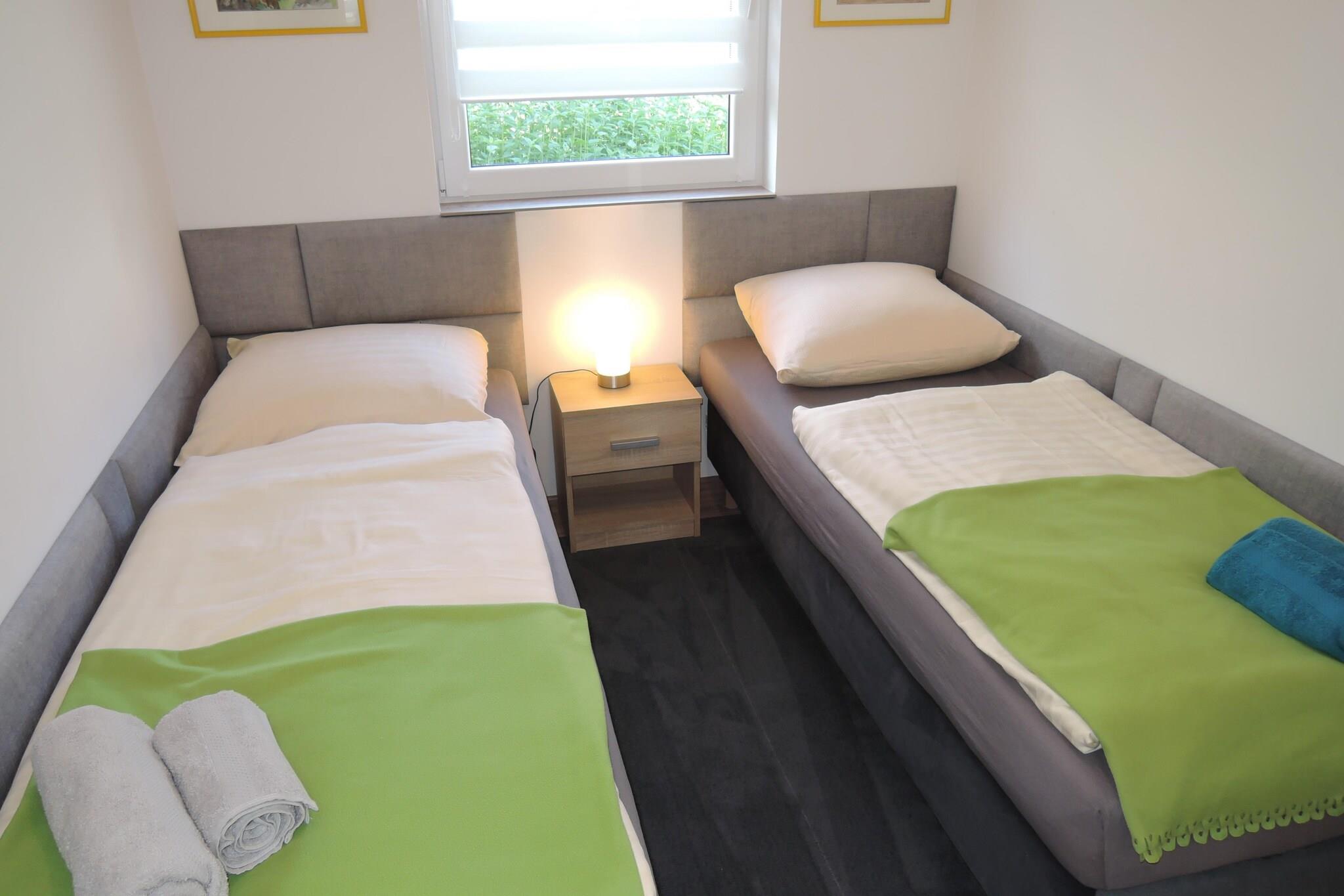 Parterre: (Aufenthaltsraum(TV, Sitzecke), offene Küche(Wasserkocher, Kochendwasserhahn, Kochherd, Kühl-/Gefrierkombination), Schlafzimmer(Einzelbett, Einzelbett), Schlafzimmer(Doppelbett), Badezimmer(Dusche, Waschbecken, Toilette)) Verkauf eigener Produkte , Eier, Grill, Terrasse, Garten(Gemeinschaftliche Nutzung mit anderen Gästen, umzäunt, angelegt, 400 m2), Gartenmöbel, Liegen, Hängematte, Hochstuhl