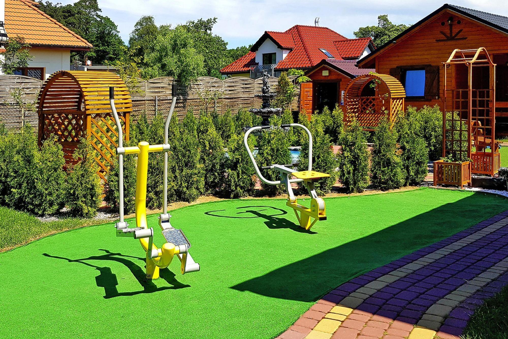 Neu erbaute Bungalows in herrlicher Lage nahe des malerischen Wiselka Sees und nur einen Kilometer vom traumhaften Ostseestrand entfernt. Die familienfreundliche Anlage befindet sich auf einem umzäunten Naturgrundstück am Rande des Wolinski Nationalparks. Hier können die Kleinen herumtoben, ohne auszubüxen, während die Eltern es sich auf ihrer Terrasse gemütlich machen. Wiselka ist ein kleiner, ruhiger Badeort, etwa 10 Kilometer vom beliebten Seebad Miedzyzdroje entfernt und rund 30 Kilometer hinter der deutsch-polnischen Grenze bei Ahlbeck auf Usedom. Der sandige, naturbelassene Meeresstrand, die Nähe des Woliner Nationalparks mit seinen Wander- und Fahrradwegen, der Wiselka See, sowie der nur 2 km entfernte Golfplatz Amber Baltic gehören zu den Hauptattraktionen dieses traumhaften Urlaubsortes und sorgen für abwechslungsreiche Urlaubstage am Strand und in der Natur. HighLights : WLAN Aktivitäten in der Nähe : Neben Baden in der Ostsee und entspannten Stunden am Strand können Sie auf zahlreichen Wander- und Radwegen oder beim Nordic Walking, Wiselka und den Wolinski Nationalpark erkunden. An der Kliffküste zur Ostsee nagen Wind und Wasser unaufhörlich an dem mit Buchen bewaldeten Steilufer. Im Inneren des Parks finden Sie spiegelglatte Seen und nach Süden treffen Sie auf die reizende Küste des Stettiner Haffs, mit einem traumhaften Blick auf das Swinedelta und den kurvigen Verlauf der alten Swine durch endlose Schilfareale. Mitten im Park befindet sich ein Wisentschaugehege und mit etwas Glück bekommt man den Seeadler, das Wappentier des Nationalparks zu sehen. Der Park ist Heimat von 1.300 Pflanzenarten und 200 Vogelarten, von denen 120 sogar im Park brüten.Sie wohnen direkt am Rande des Parks und können in drei größere Wanderrouten einsteigen. Sehenswert ist hier auch das Wisent Reservat und das Dorf Wapnica mit seinem türkisgrünen See Jeziro Turkusowe. Wer Wassersport liebt, kann am Wiselka-See nicht nur Windsurfen und Segeln, sondern auch Kajaks, Ruderboote und Angelausrüstungen leihen Mobilität : Nicht geeignet für Personen mit eingeschränkter Mobilität