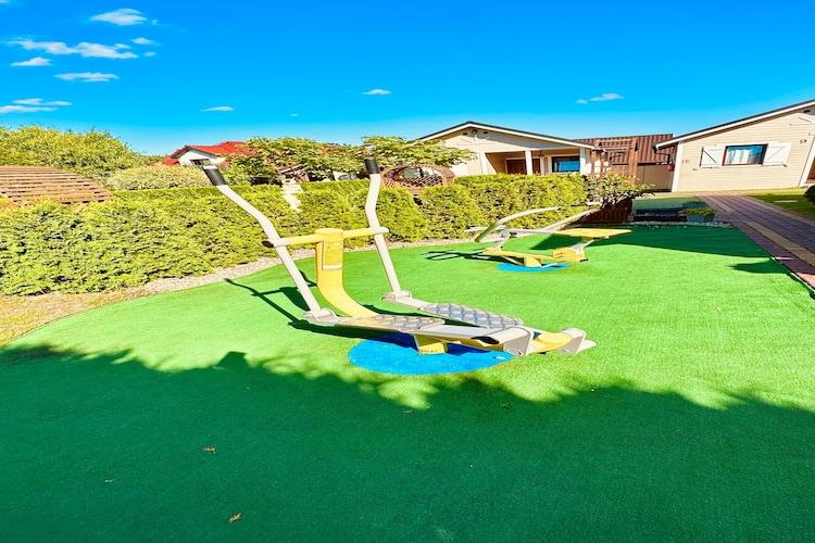 Kochnische(Kochplatte(2 Kochplatten, Ceranfeld), Wasserkocher, Toaster, Kaffeemaschine, Kühl-/Gefrierkombination), Wohn/Esszimmer(TV(Satellit, Deutsch Fernsehsender), Sitzecke), Schlafzimmer(Doppelbett), Schlafzimmer(Etagenbett), Badezimmer(Dusche, Toilette), Grill, Babybadewanne, Waschmaschine, Heizung(elektrisch), Gartenmöbel, Parkplatz, Trampolin, Pool(Gemeinschaftliche Nutzung mit anderen Gästen, im Garten, überdacht, 14 x 3 m.), Sandkasten, Rutsche, Hochstuhl, Schaukel, Babybett (kostenlos)