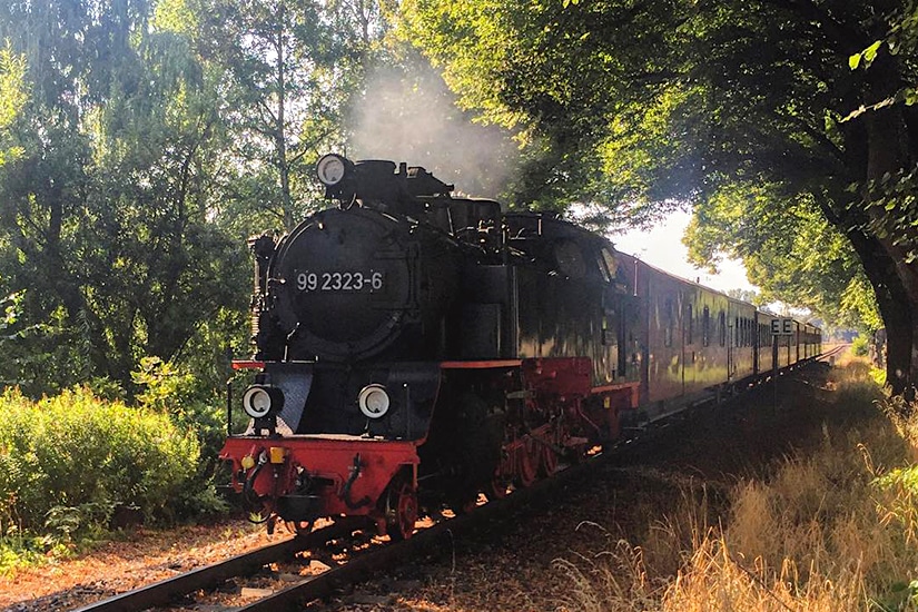 Empfehlenswert: Zwischen Göhren und Putbus ist eine der ältesten Dampflokomotiven „Der Rasende Roland“ unterwegs und lädt die Rügenbesucher zu einer spektakulären Fahrt durch Rügens abwechslungsreiche Natur ein.