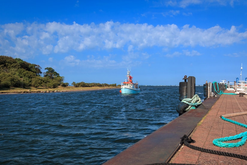 Zwischen Schaprode und der vorgelagerten, kleinen Insel Öhe liegt der Naturhafen. Fährschiffe steuern das ganze Jahr über die autofreie Insel Hiddensee an. Die Dünenheide lädt zu langen Spaziergängen auf der Insel mit dem weißen Leuchtturm ein. Wer die letzte Fähre verpasst, dem stehen auch nachts Wassertaxis zur Verfügung.