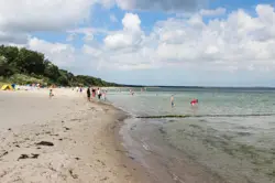 Der feine, weiße Sandstrand bietet allein schon durch seine Größe viel Privatsphäre. Hier findet jeder ein ruhiges Plätzchen. Lange Spaziergänge mit dem Vierbeiner, sind dank Hundestrand natürlich auch möglich. Parken kann man auch direkt am Strand, teilweise sogar kostenfrei.
