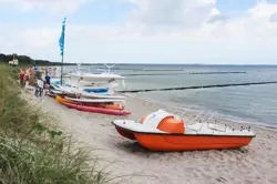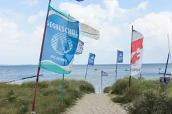 Eine Surf- und Segelschule liegt direkt am Strand und bietet ein breites Angebot an Wassersport Aktivitäten.