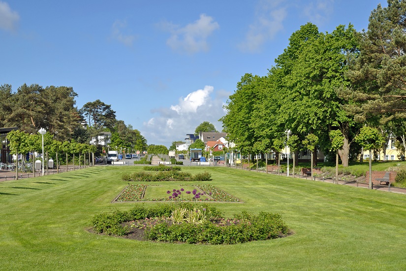 Die Strandpromenade von Baabe ist ein ruhiger, aber charmanter Ort zum Flanieren. Sie verbindet den Ortskern mit dem Strand und bietet dabei schöne Ausblicke auf Dünen, Meer und Promenadencafés – ideal für einen entspannten Spaziergang.