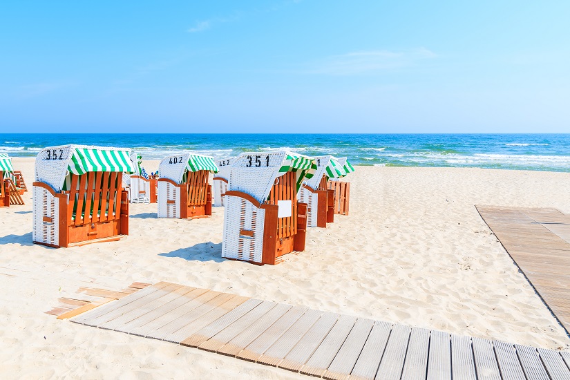 Der Strand in Baabe ist breit, sauber und familienfreundlich. Feiner Sand, flaches Wasser und gute Infrastruktur machen ihn zu einem perfekten Ort für Sonnenbäder, Sandburgenbauen oder ausgedehnte Spaziergänge am Wasser.