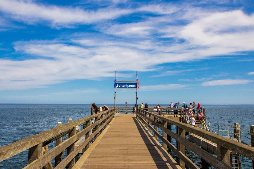 Von der Ferienwohnung in Boltenhagen über die Seebrücke, die erstmals 1911 erbaut wurde, kann man bis hinaus aufs Meer spazieren und den Ausblick genießen. Die Boltenhagener Seebrücke weist eine Länge von 290 Metern auf und gehört zu den Sehenswürdigkeiten des Seeheilbades. Passagiere gehen von Bord der vielen Ausflugsschiffe und genießen ihren Aufenthalt in Boltenhagen. Des Weiteren beobachten die Touristen von hier aus das stetige Treiben rund um die Brücke und der See.