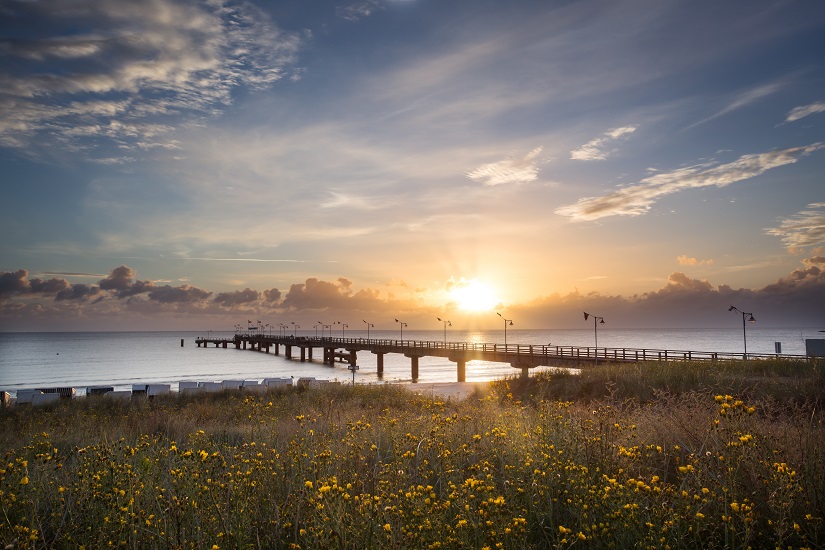 Die Seebrücke von Göhren ist rund 270 Meter lang und ein beliebter Ort für Spaziergänge und Ausflugsfahrten. Von hier hat man einen tollen Blick auf die Küste – besonders schön bei Sonnenaufgang oder -untergang.
