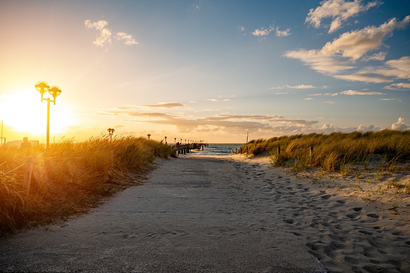 Die Promenade von Graal-Müritz lädt zum entspannten Spazieren ein. Sie verläuft parallel zum Strand und verbindet Cafés, Boutiquen und Ruhezonen mit direktem Meerblick. Besonders in den Abendstunden ist hier Urlaubsstimmung garantiert.