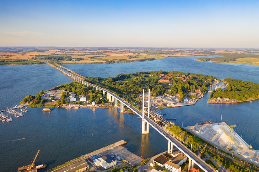 Die moderne Rügenbrücke wurde zwischen 2004 und 2007 gebaut und im Oktober 2007 feierlich eröffnet. Sie verbindet das Festland bei Stralsund mit der Insel Rügen und erleichtert die Anreise deutlich – vor allem in der Urlaubssaison. Die Brücke ist nicht nur praktisch, sondern auch ein architektonisches Highlight der Region.