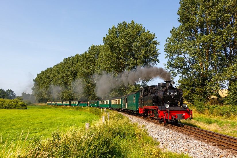 Ein Highlight ist die Fahrt mit dem Rasenden Roland, einer historischen Schmalspureisenbahn mit Dampflok. Sie durchquert mit 30 km/h gemütlich den Südosten der Insel und verbindet sehenswerte Ostseebäder wie Putbus, Sellin und Göhren.