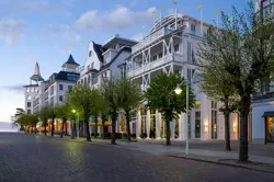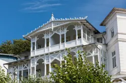 Die Strandpromenade in Sellin verbindet maritimes Flair mit eleganter Bäderarchitektur. Beim Flanieren genießt man den Blick auf Villen, das Meer und gepflegte Grünanlagen – ideal für entspannte Stunden am Wasser.