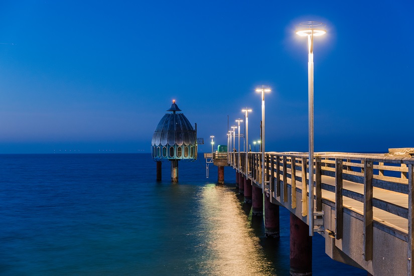 Die Seebrücke von Zingst ist rund 270 Meter lang und bietet traumhafte Ausblicke auf die Ostsee. Von hier starten Ausflugsschiffe, und in den Sommermonaten finden Veranstaltungen und Lichtinstallationen statt. Ein Muss für jeden Besucher!