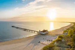 Ahlbeck liegt ganz im Osten der Insel Usedom, direkt an der Grenze zu Polen. Als eines der drei Kaiserbäder besticht es durch prachtvolle Bäderarchitektur, einen breiten Sandstrand und die älteste Seebrücke Deutschlands – ein ideales Ziel für Ostseeliebhaber.